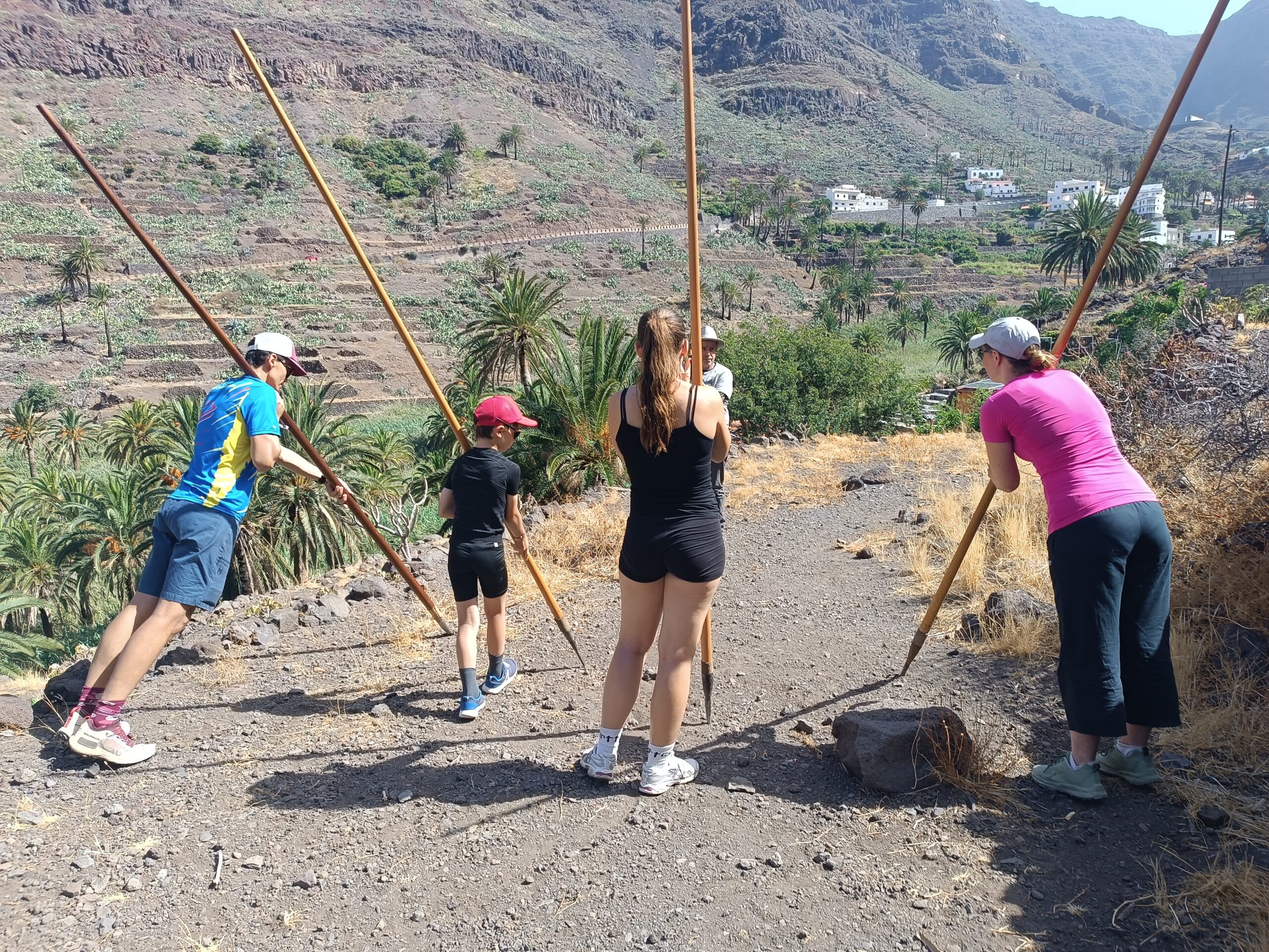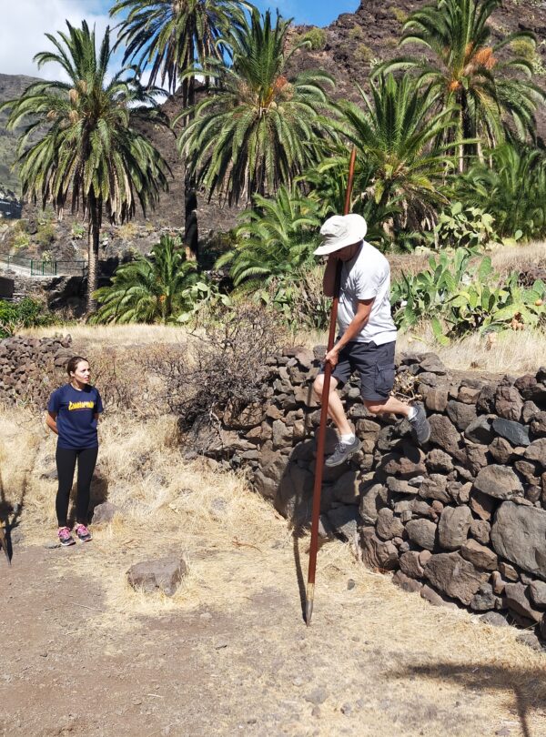 You will experience the culture of La Gomera through two unique traditions that reveal the profound connection between people and the mountains: Silbo Gomero, the whistled language recognized as Intangible Cultural Heritage of Humanity, and Salto del Pastor, an ancestral shepherding technique.