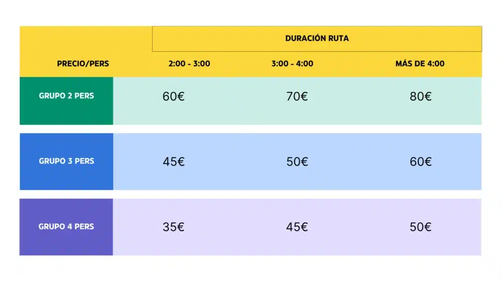 Los precios incluyen guía, seguros y impuestos. El transporte se puede incluir en función de la distancia.